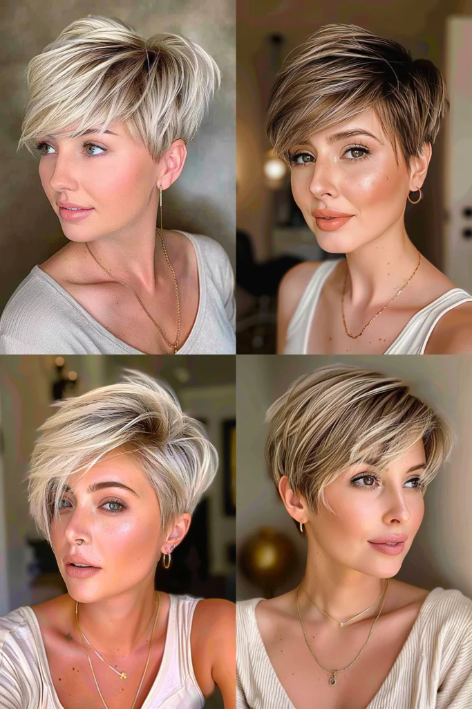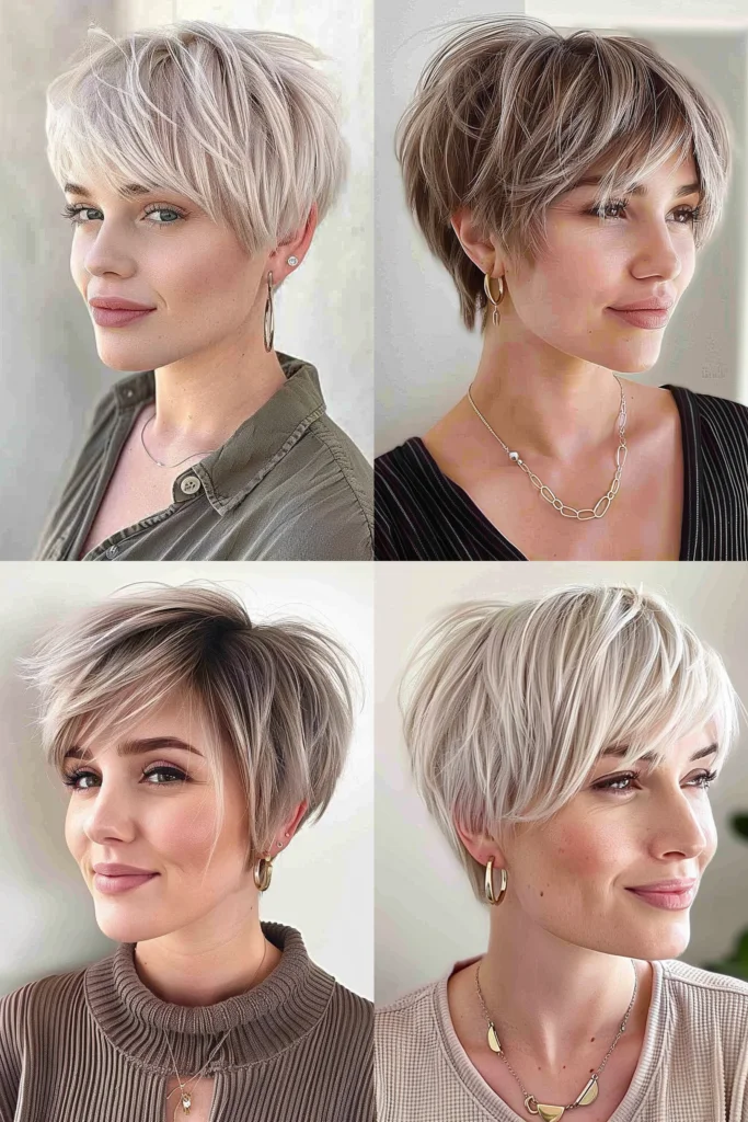 An edgy pixie cut characterized by its sharp, angular layers making it bold and modern looking. This hairstyle is ideal for people who want to stand out as well as those who are obsessed with cutting-edge fashions.