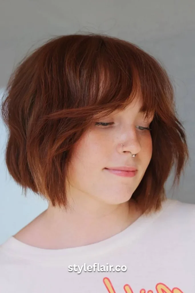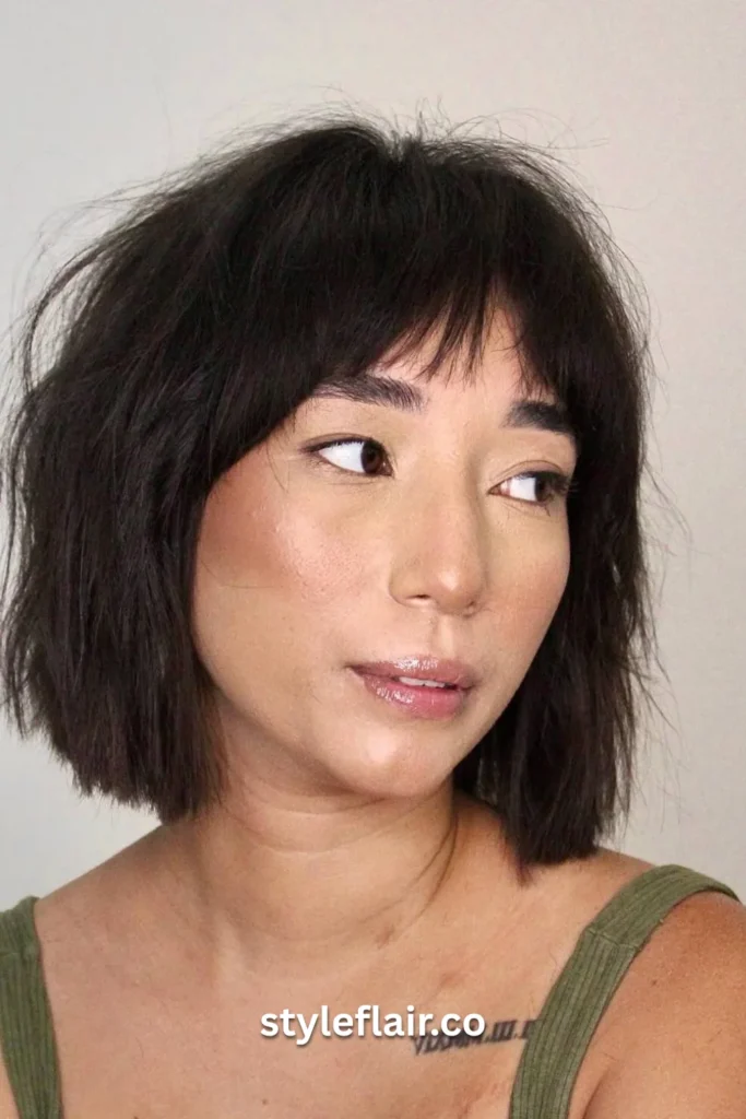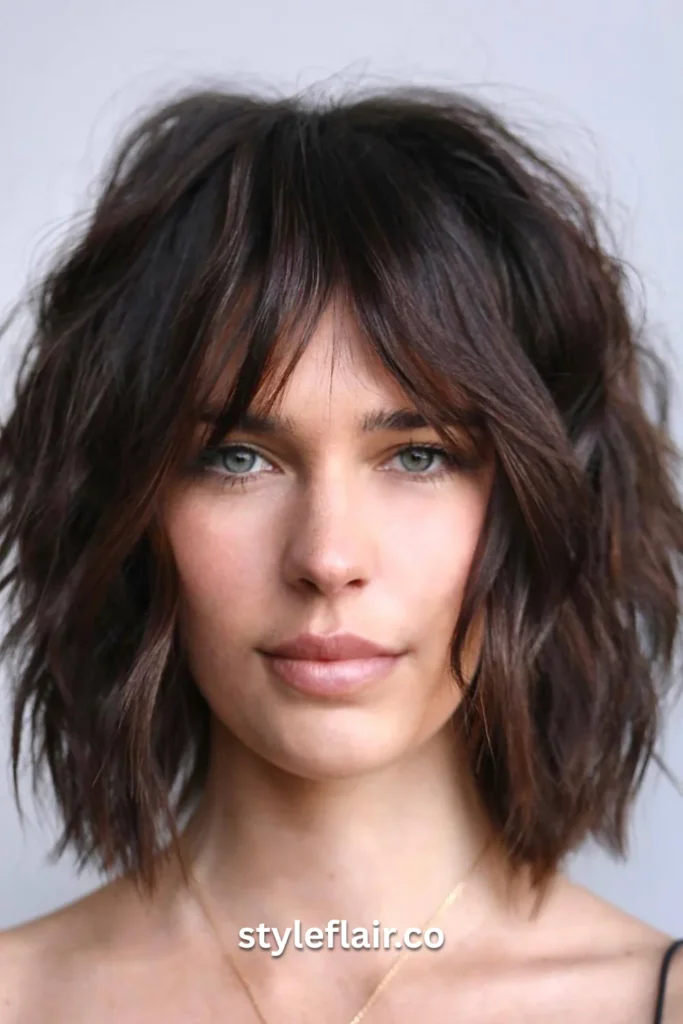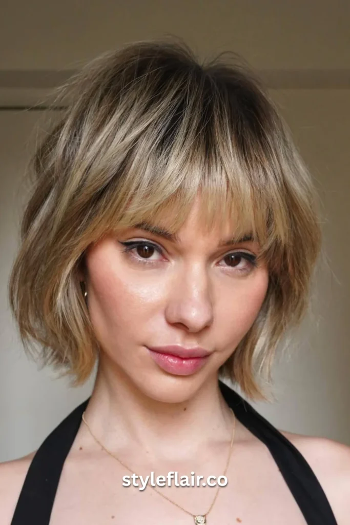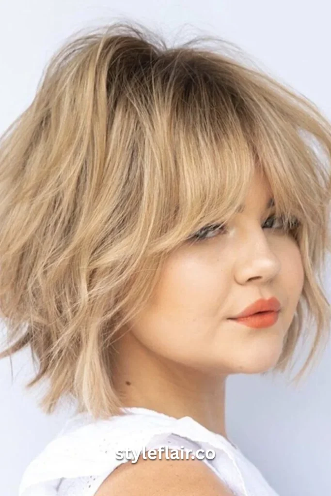Here’s the magic of a shaggy bob: it gives fine or flat hair instant personality. The layers create texture that lifts your roots and softens your face. It’s not about symmetry—it’s about movement.